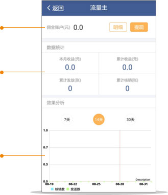 你可以是流量主,看到广告佣金的明细,同时通过提现