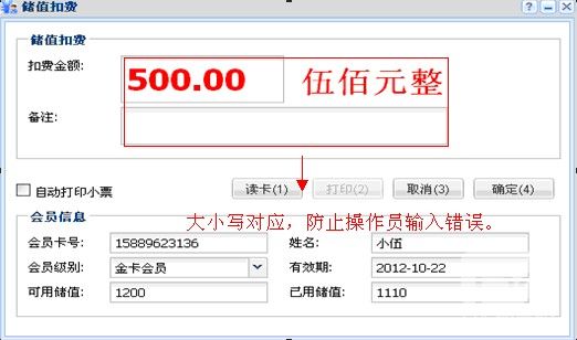 如果关注储值卡安全性,可以设定储值扣费授权码,只有操作员正确输入授权码,才可以完成储值卡扣费的操作
