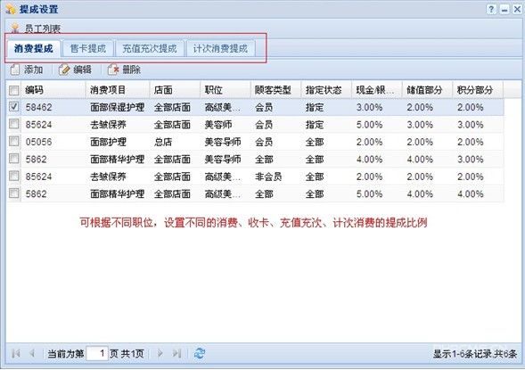 不同项目,不同店面,不同职位,不同类型的客户,不同的支付方式,均可设置提成规则;
