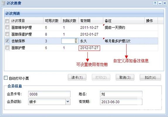 优点:给商家增加现金流,绑定客户,操作简单快捷,每个计次可以单独设置有效期