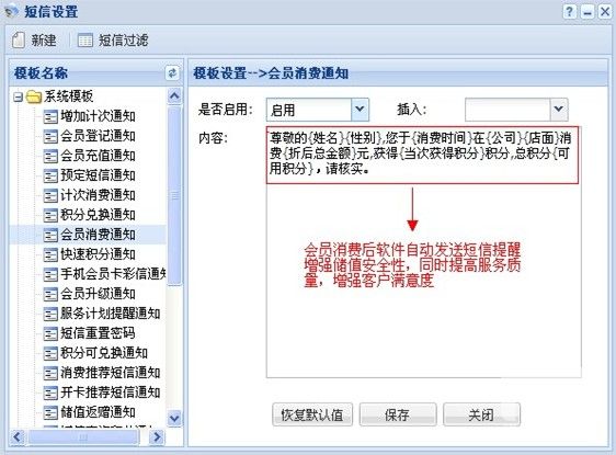消费后软件自动发送短信提醒会员