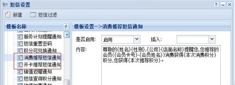 设置推荐人短信通知模版:
